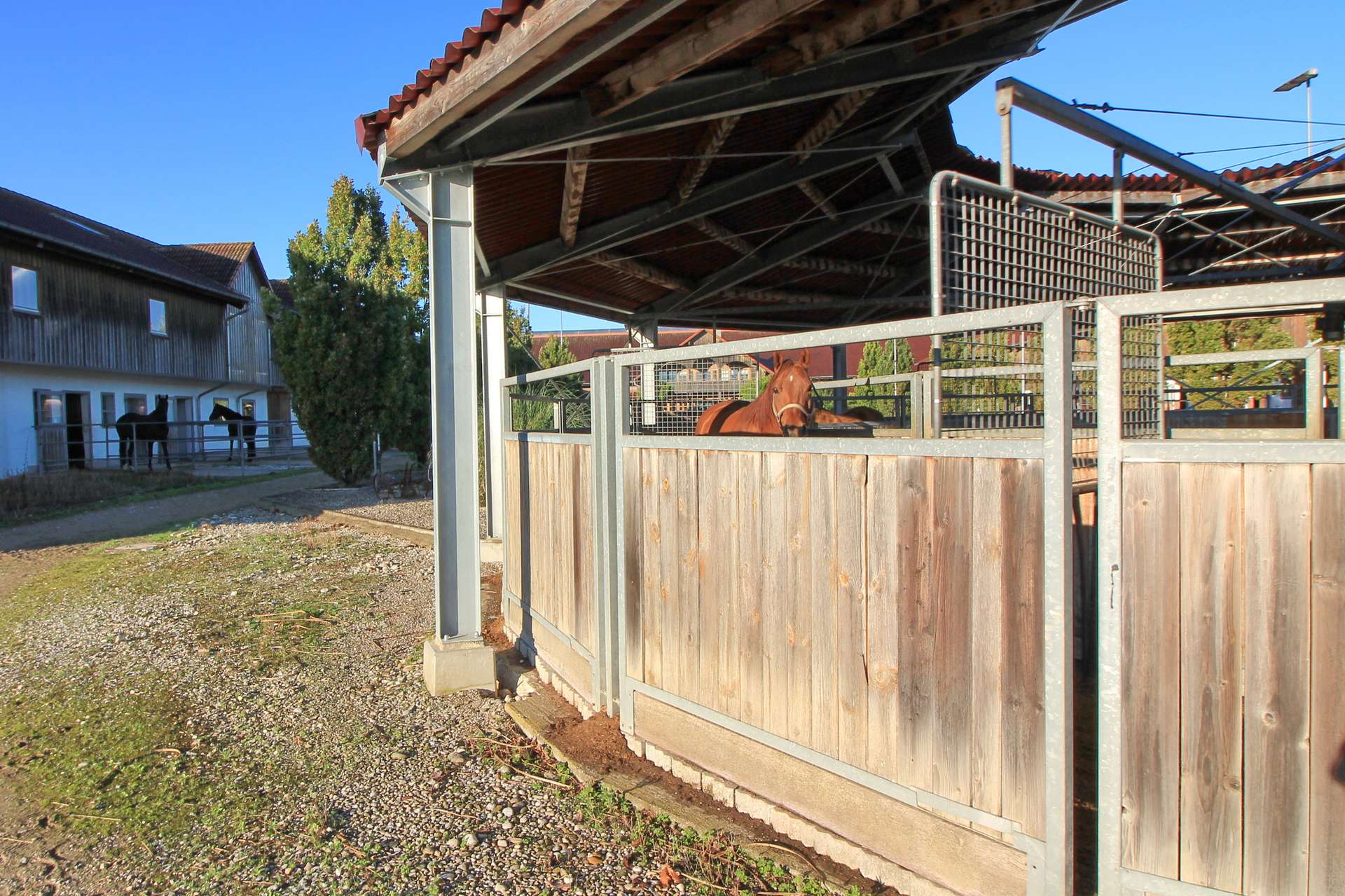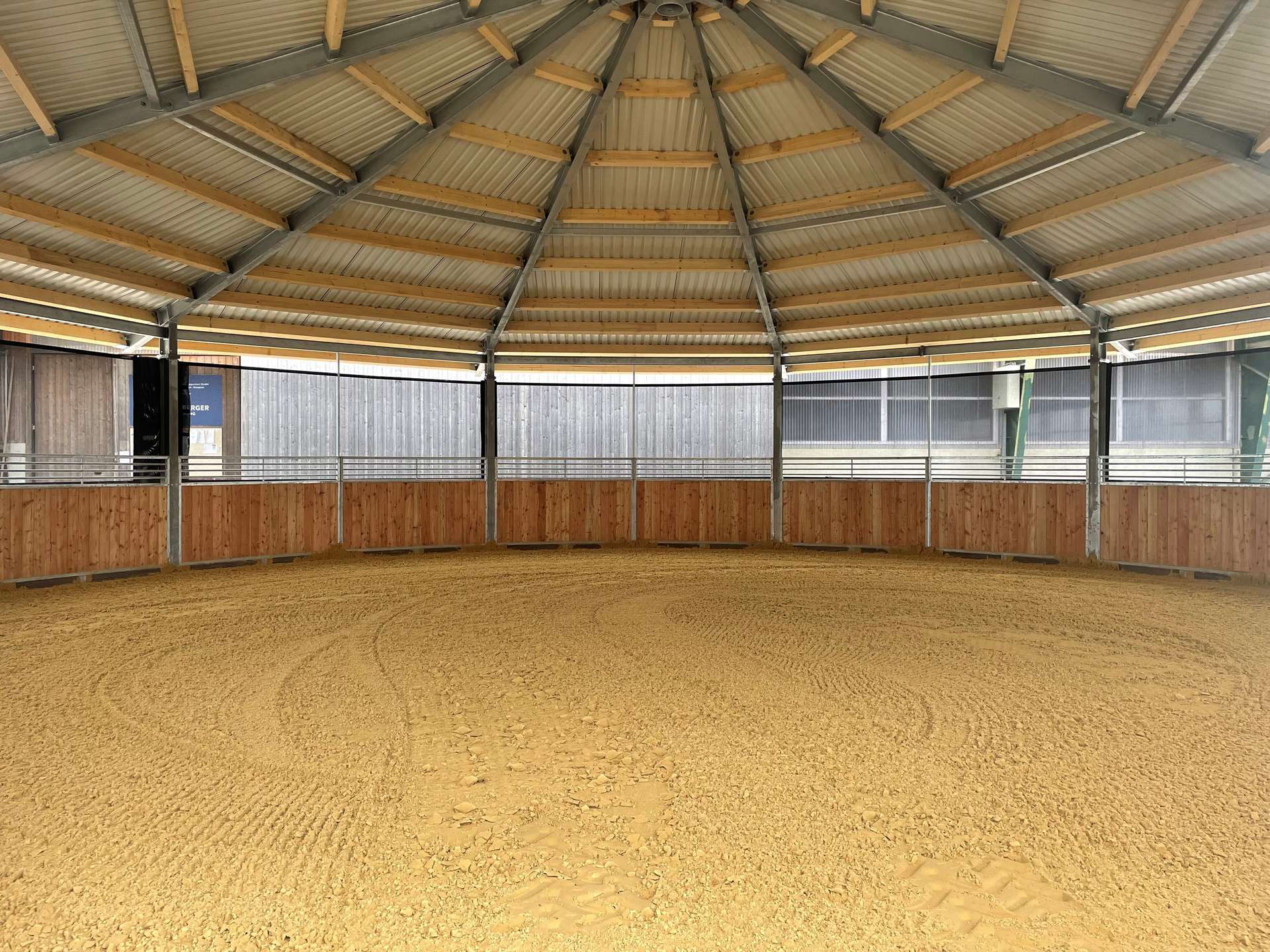 – Überdachte Longierhalle (Durchmesser 16 m) – ideal für Bodenarbeit oder das Longieren